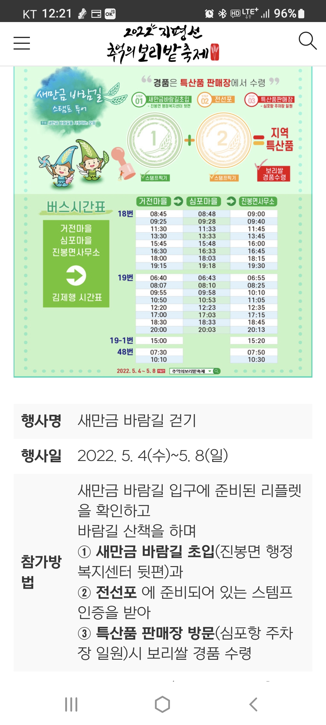 4. 진봉면에서 열심히 준비하시고 행사를 하는 것에 비해 참여자가 많아 보이지는 않아서 안타까웠답니다. 홍보를 더 많이 해서 많은 분이 참여하길 바랍니다.(사실 한적하니 걸어서 참여자 입장에서는 좋긴했는데 마을분이나 행사준비하시는 분들이 좀 서운하실 듯해서 ㅎ)